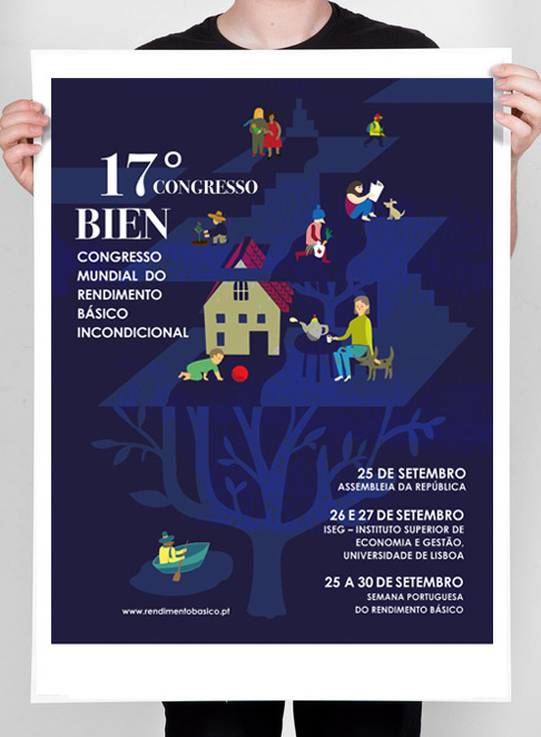 I created the following materials for Basic Income Congress, that took place in Lisbon in September of 2017. The first project was an illustration for the poster, and since the organizers liked the results, I also designed the program and larger exhibition displays.